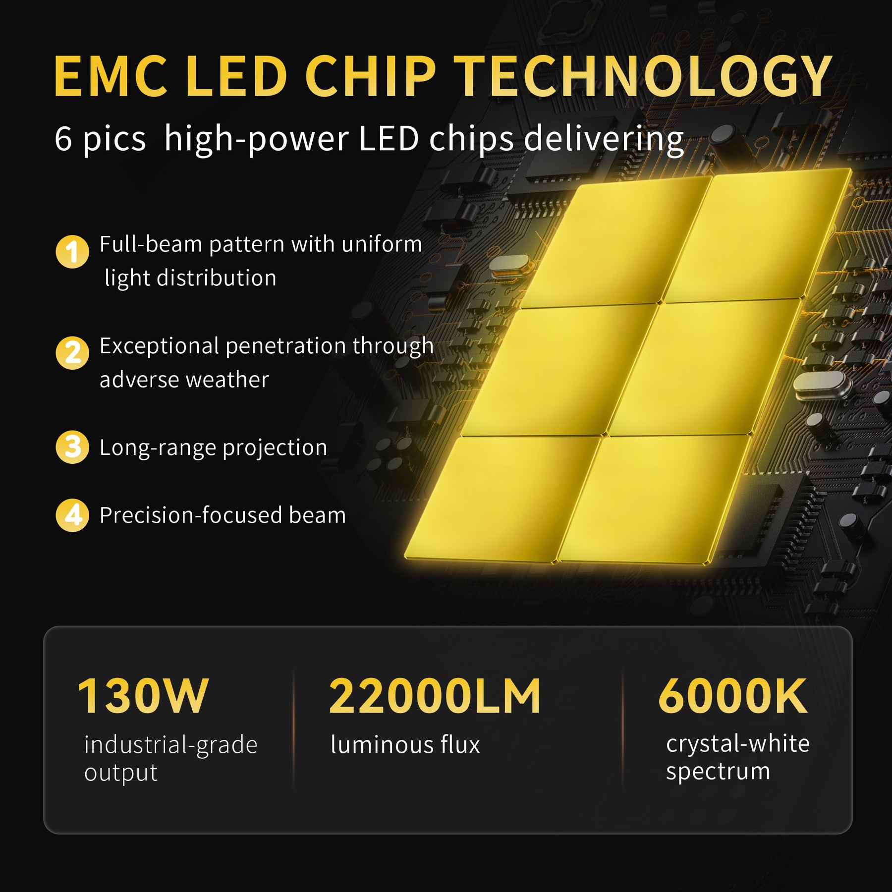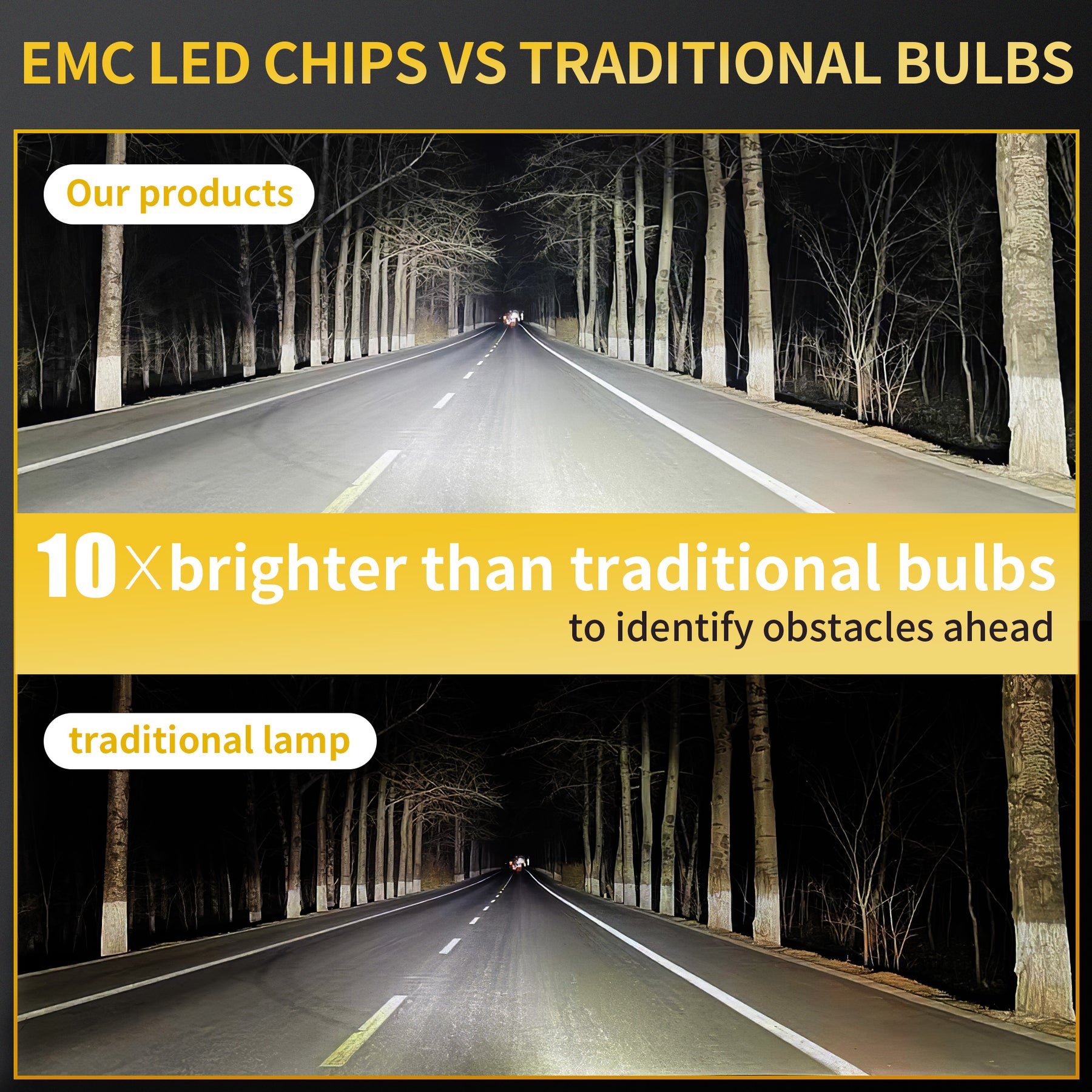 70W power delivers 11,000LM per pair  500% brighter (5x) than halogens. 6000K pure white light provides maximum nighttime visibility.
