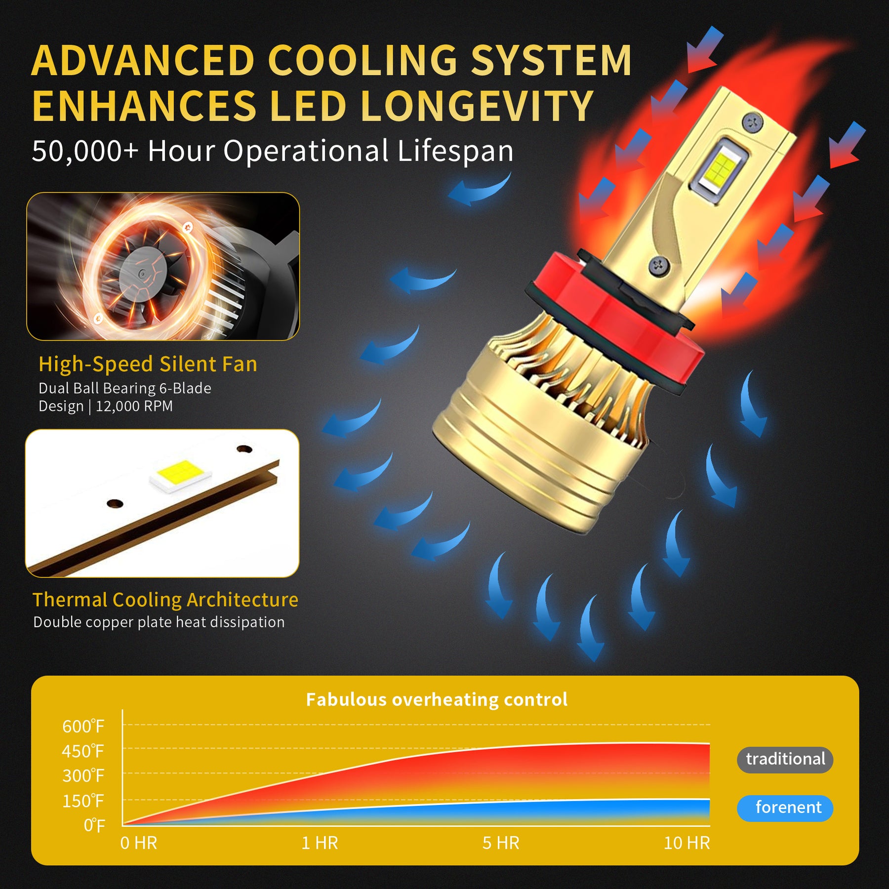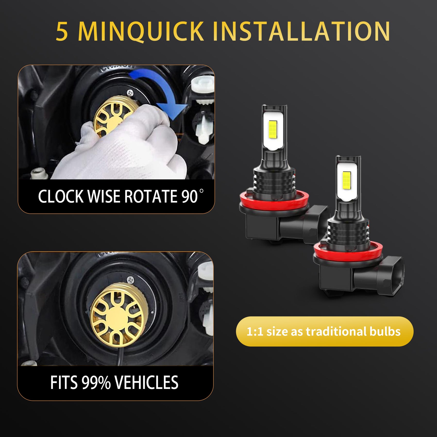 H11 High/Low Beam feature precision 1:1 halogen sizing. Zero wiring or modifications – install like factory bulbs in minutes, no tools needed.